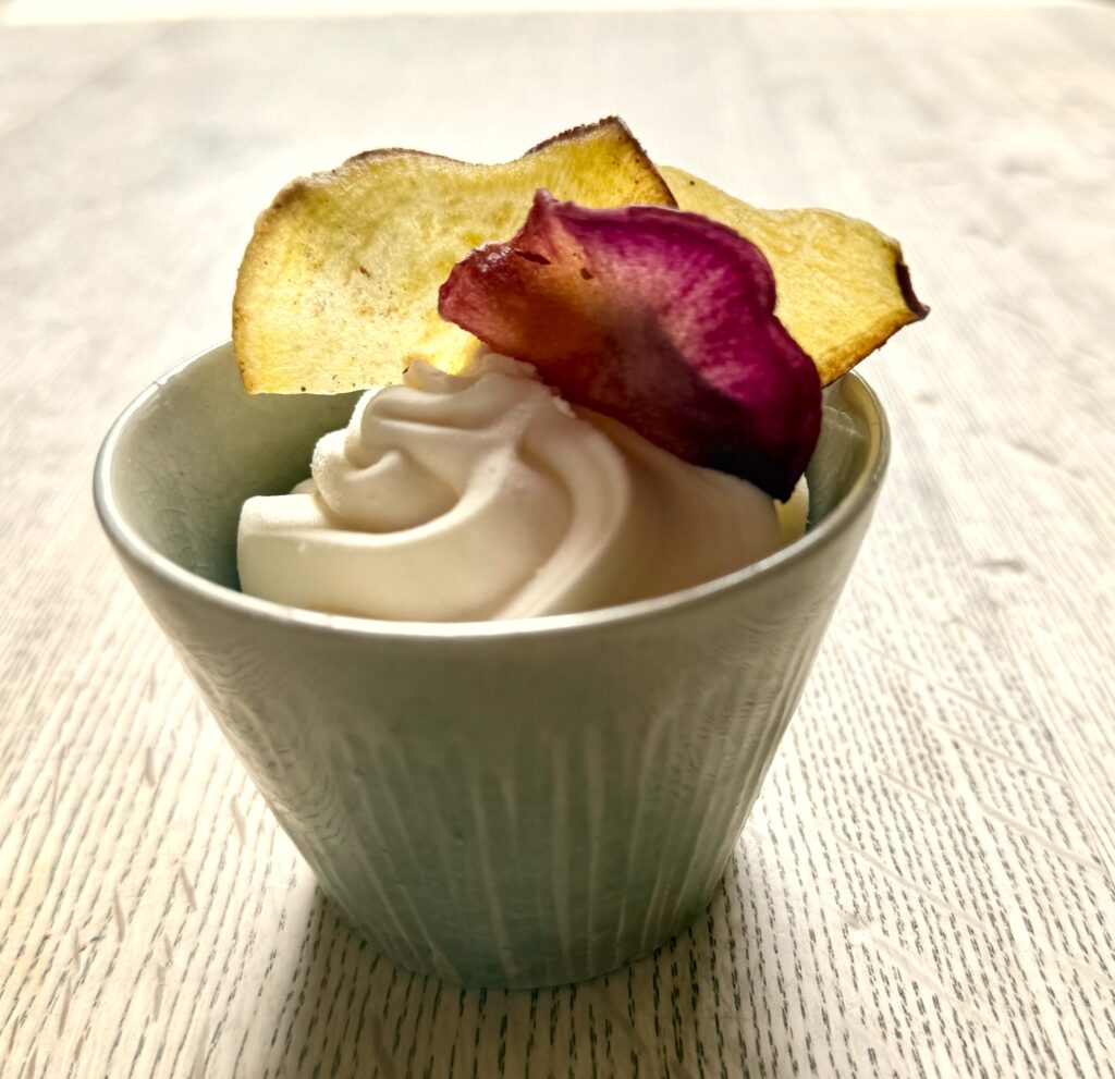 まこみーちゃんお勧めの食べ方、バニラアイス×まにわチップスがまた美味しいのです。