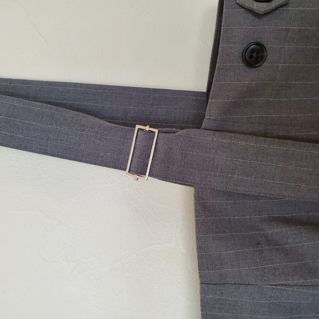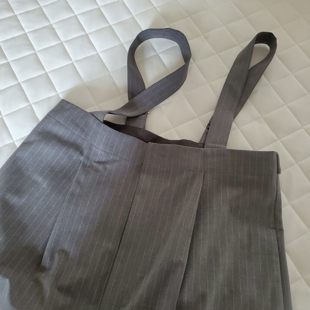 きれいめコーデにも対応してくれるピンストライプ柄です。スーツのような生地感で、真夏以外は着られそうです。お家で手洗いできるのも嬉しいポイントです。