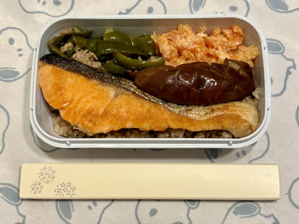 付け合わせは前回と同じ無限ピーマン、にんじんのサラダ、更になすの煮浸しも追加。