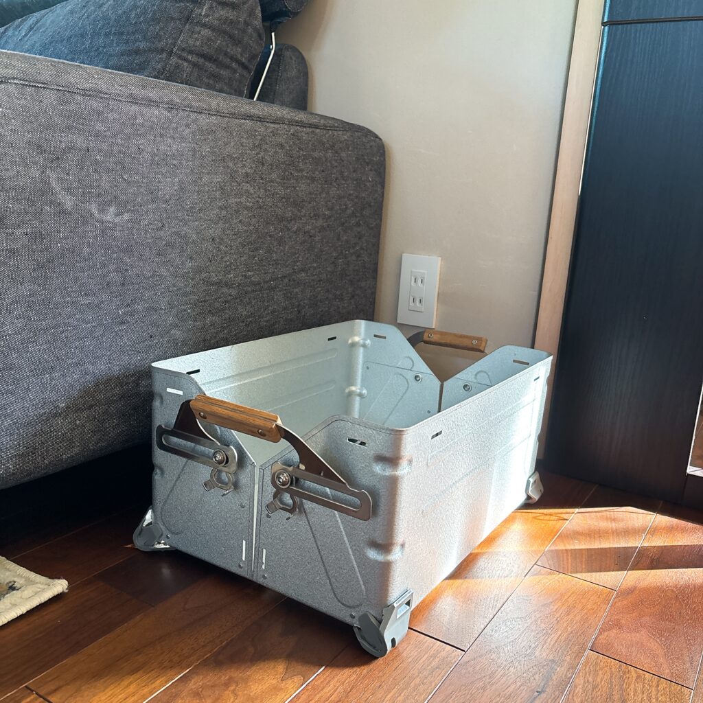 なお、現在本を入れているこちらのボックスはスノーピークのキャンプ用品シェルフコンテナ。