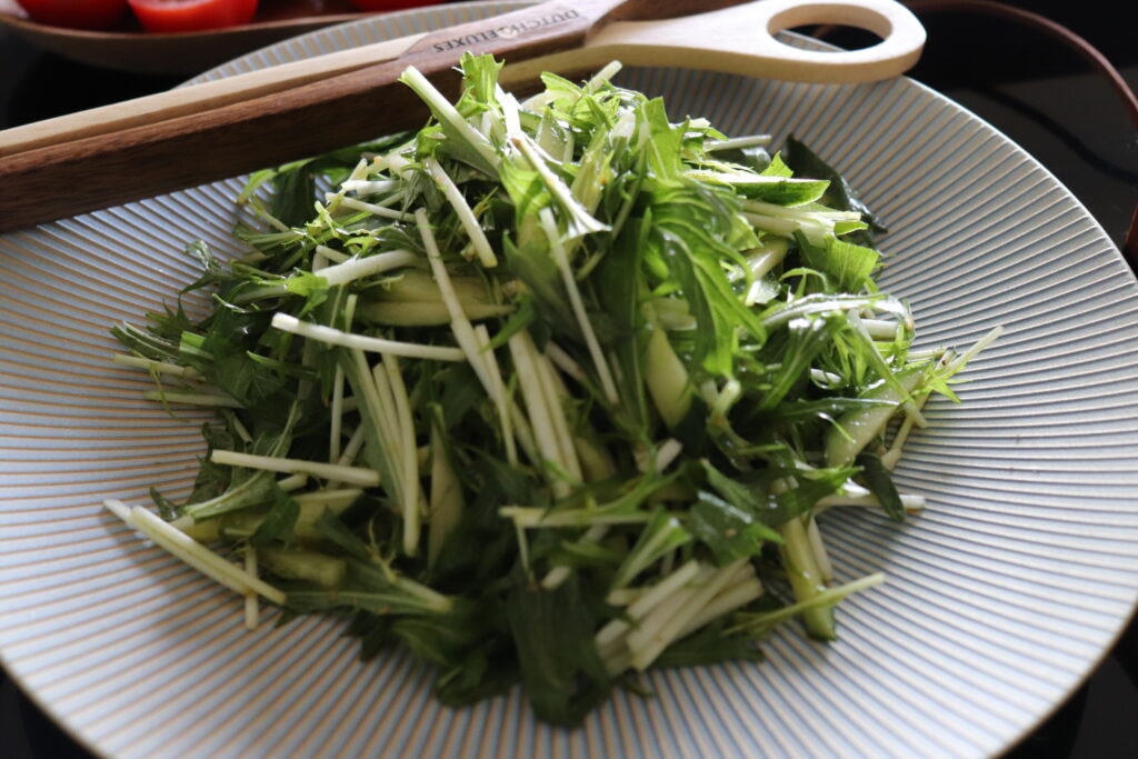 ドレッシングはごま油、しょうゆ、すりごま、顆粒中華だし