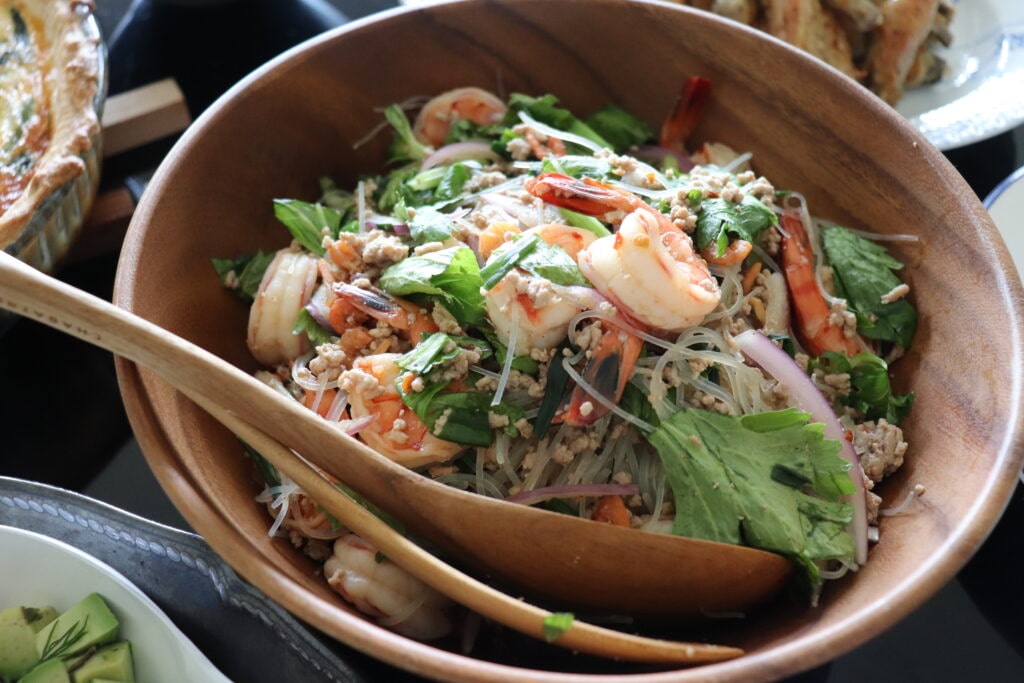 食べるのも作るのも大好きタイ料理。すっぱからいヤムウンセンはオイリーな料理や重ため料理の中和にもなるし、クセが強くないので他の料理の邪魔をしないと思います。