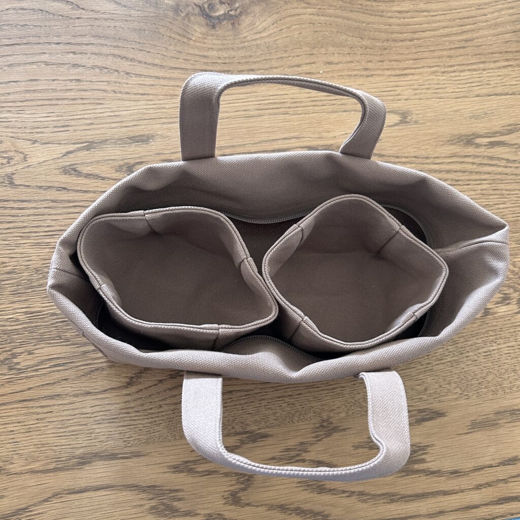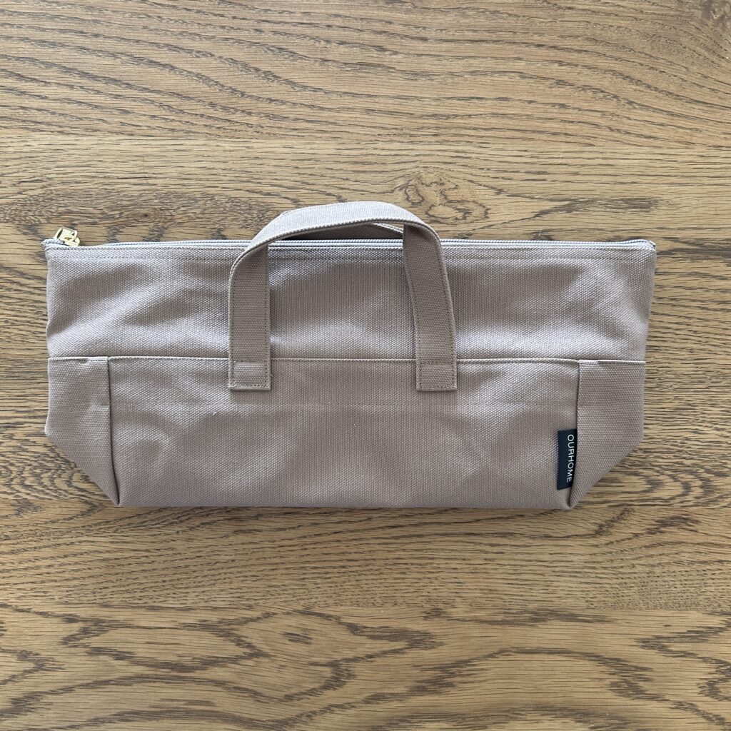 スタンドポーチが2つ付いています。そしてファスナー部分を折って、使いやすく高さを浅くできます。