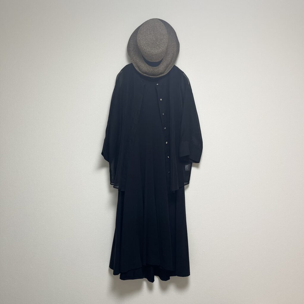 地味色(しかも黒)のワントーンも、シアーシャツなら暗くなりすぎずに軽やかな印象に。