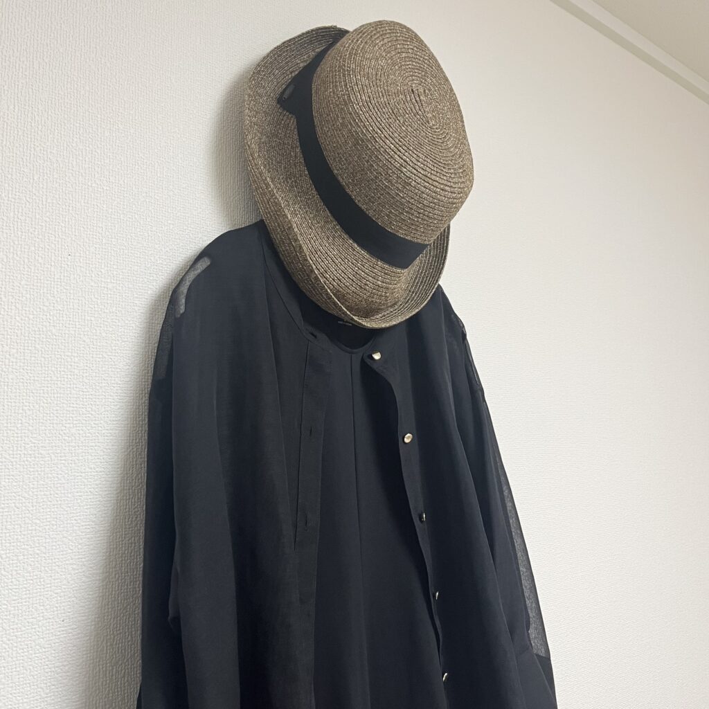 今回コーディネートに使ったのは、昨年KEYUCAで購入したシアーシャツ。