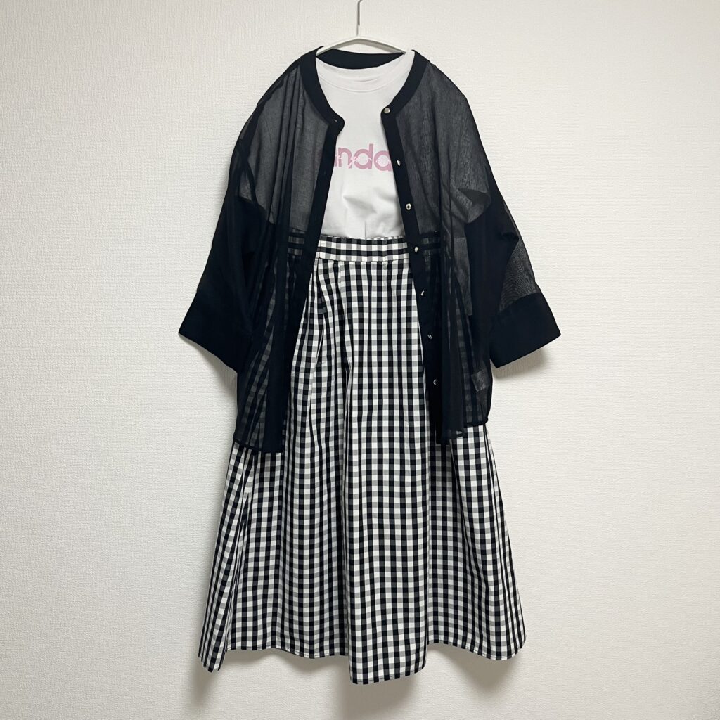 わたしも手持ちのシアーシャツをコーディネートしてみました。