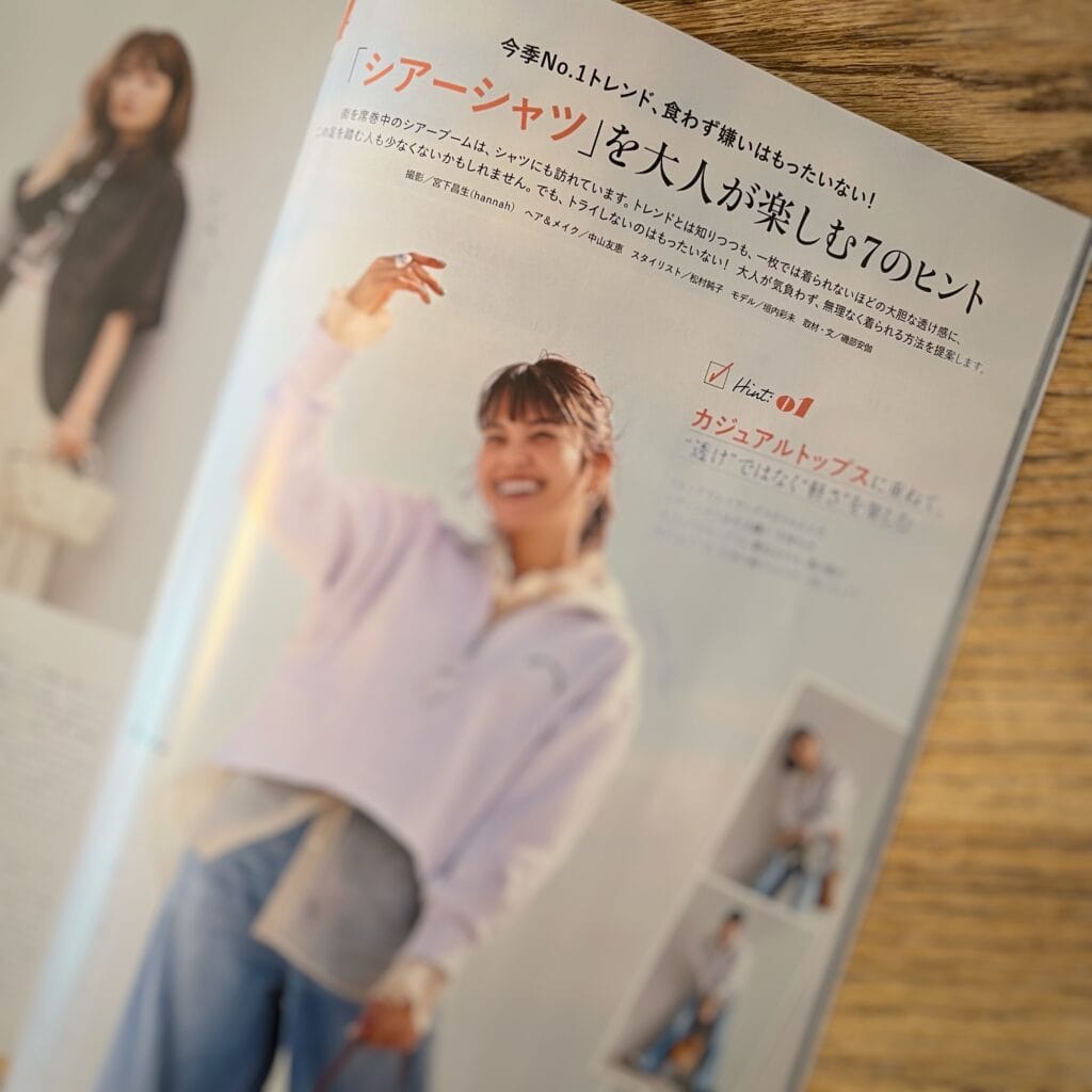 最新号ではブルーのストライプシャツ、一枚映えシャツ、高機能シャツ…など、さまざまなシャツがピックアップされていますが、わたしが注目したのは「シアーシャツ」。