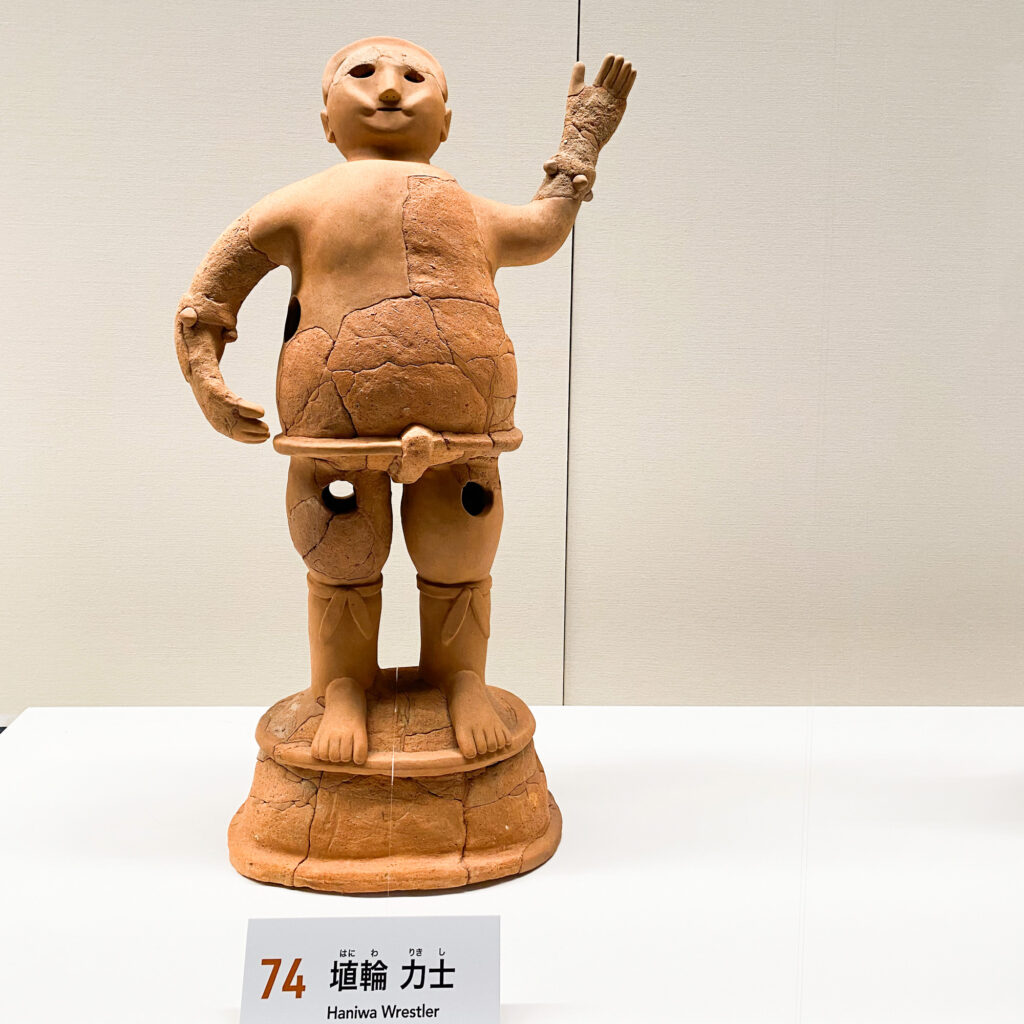 力士のはにわに出会えました。塩をまいているのでしょうか・・・払いのけてる?それとも「Hi !」と言ってくれてる?