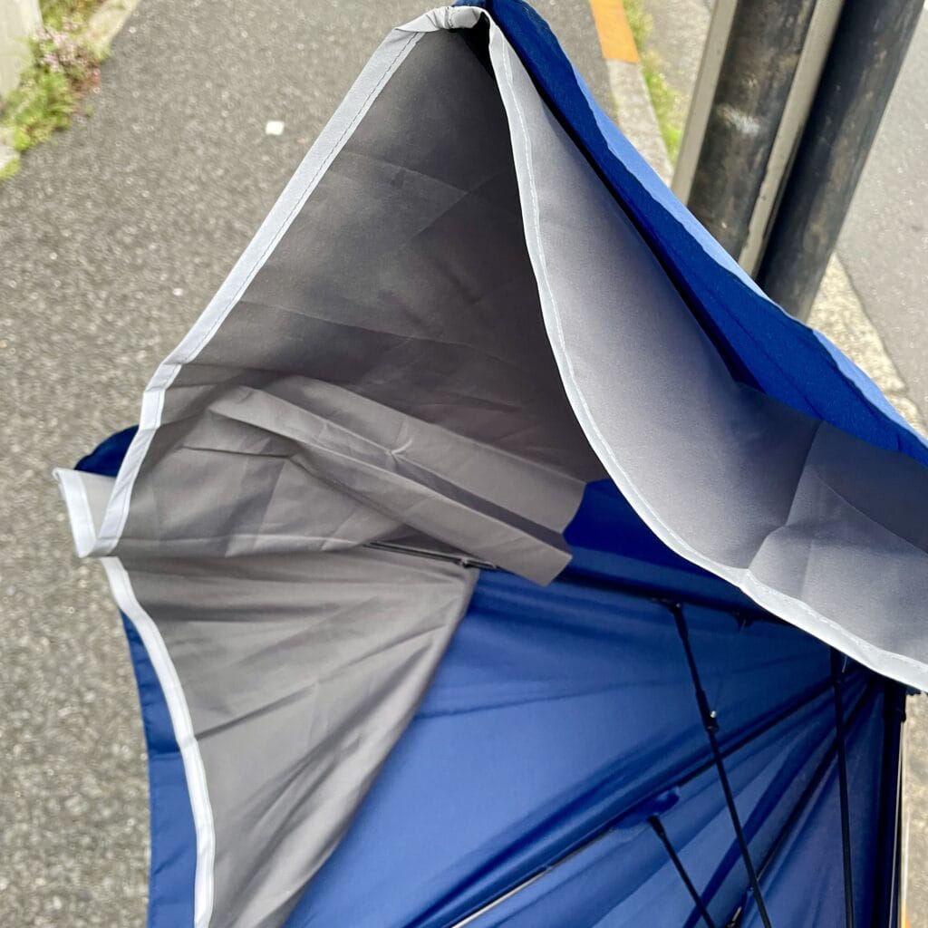 グレーの部分、閉じたときは収納され普通の傘と同じ長さになので、 持ち運びも困る事はありません。