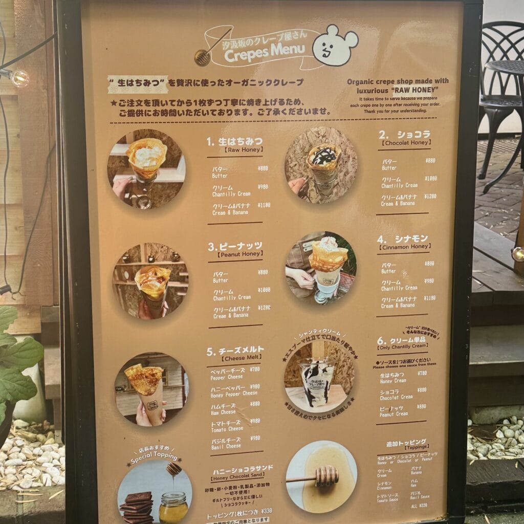 お店の自慢は、生はちみつを使用したオーガニッククレープです。生はちみつ専門店「MY HONEY」の天然・非加熱のはちみつを贅沢に使用しているのだとか。