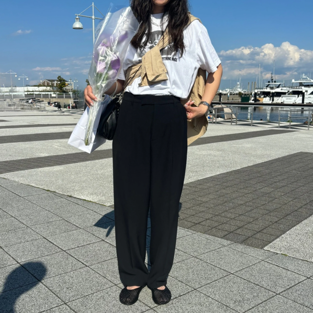 たしかに、黒のバレエシューズよりも抜け感が出て足元軽くなるかも~
