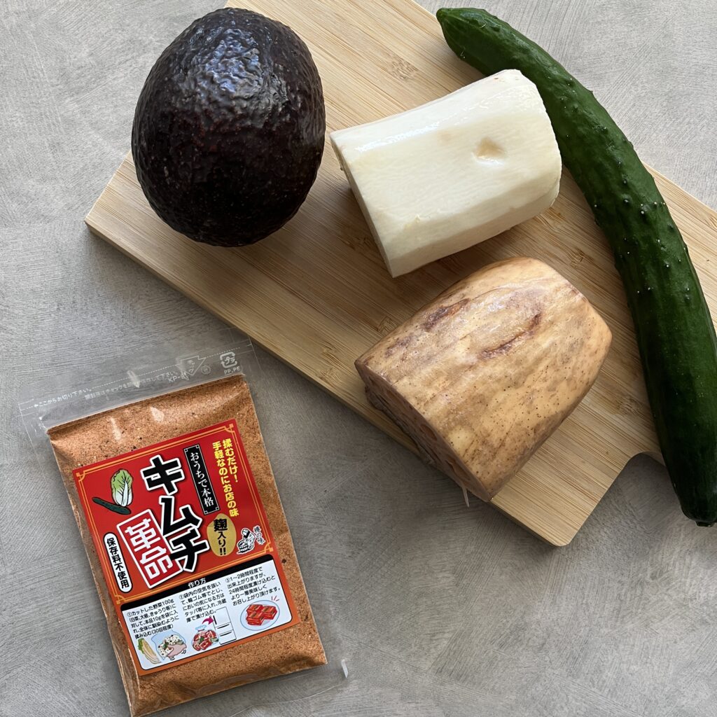今回は、きゅうり、長芋、レンコン、アボカドを使いました。