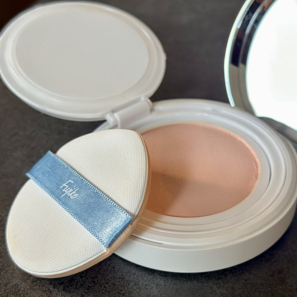 メッシュタイプのクッションを指でぎゅっと触ってみるとジュワっとした水っぽい感触なのですが、それをパフに取ってポンポンと顔に塗ってみると先程までの水っぽさはどこへやら?まるで粒子の細かいパウダーを塗布した後のようなサラッとした肌になるんです。