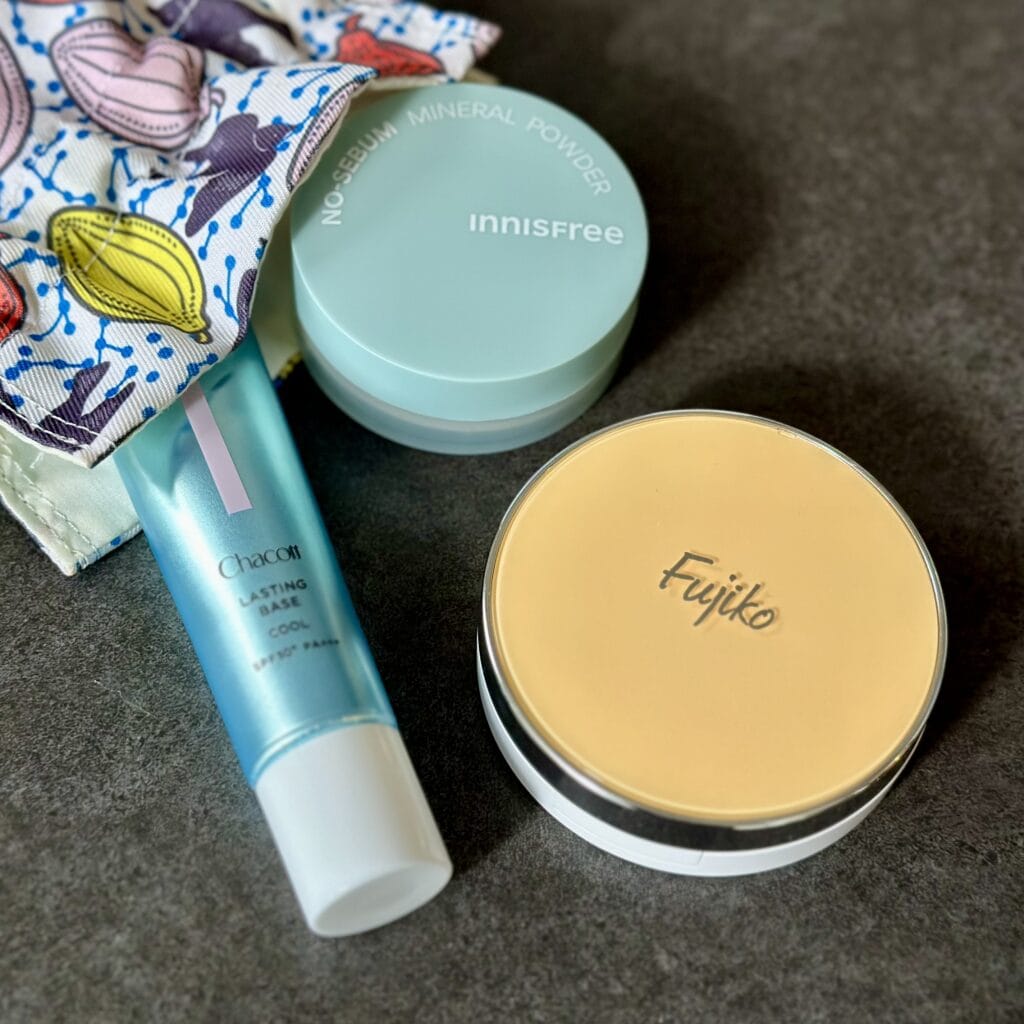 先日購入した「チャコットのラスティングベースクール」に「イニスフリーのパウダー」、そしてメイク直し用に「フジコのあぶらとりウォーターパウダーNEO」の3点で最近はメイクをしていますが、個人的に以前より崩れにくさ、テカリにくさを実感しています。