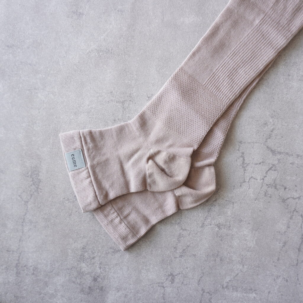 美容家の本島 彩帆里さんがプロデュースするイウミーのめぐりソックスが好きで長年愛用中。靴下を履くように履いて太ももにかけて脚のむくみをケアしてくれるご褒美ソックスです。