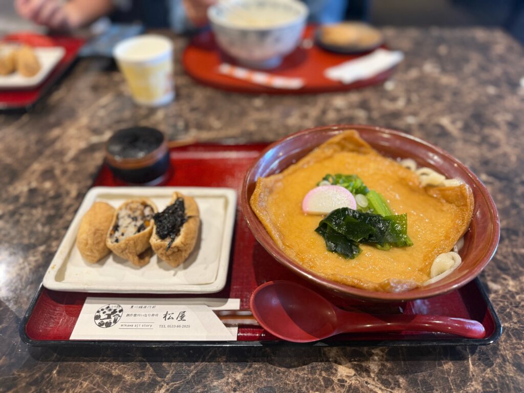 豊川いなり寿司をいただきたくて気になっていた『松屋』さんへ伺いました。いなり寿司を食べにきたけれど、大好きな”きしめん”が気になりこちらのセットに。