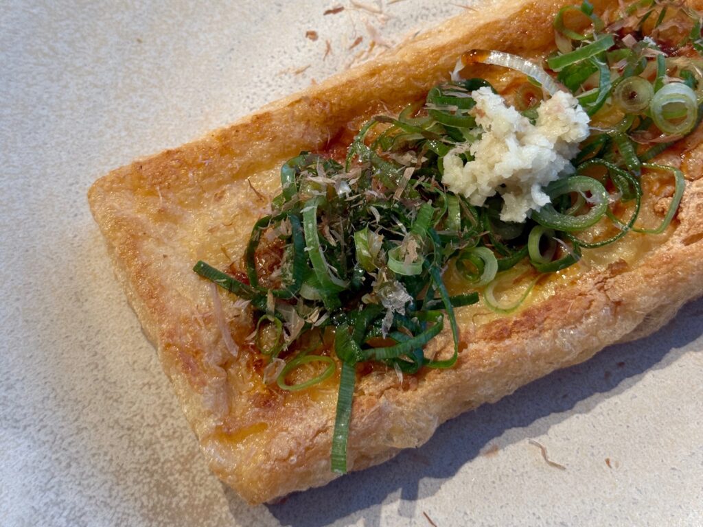 一緒に買ったお揚げは、焼いてネギと生姜と鰹節にちょろっとお醤油をかけてシンプルにいただきました。