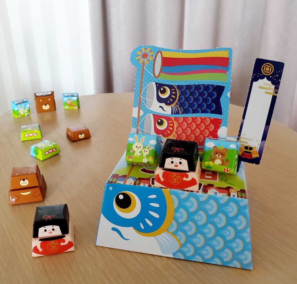 こんなに可愛い♡こどもの日限定のチロルチョコがあるなんて知りませんでした。外箱を組み立てると、鯉のぼり飾りに変身するんです。