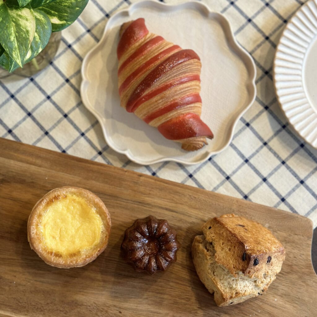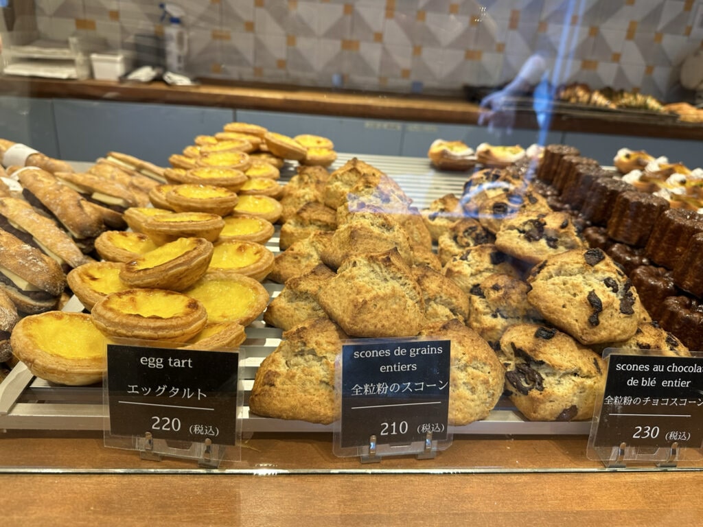 エッグタルト、スコーン、カヌレ、ハード系からお惣菜系まで…バラエティ豊かな品揃えに目移りしてしまいます。