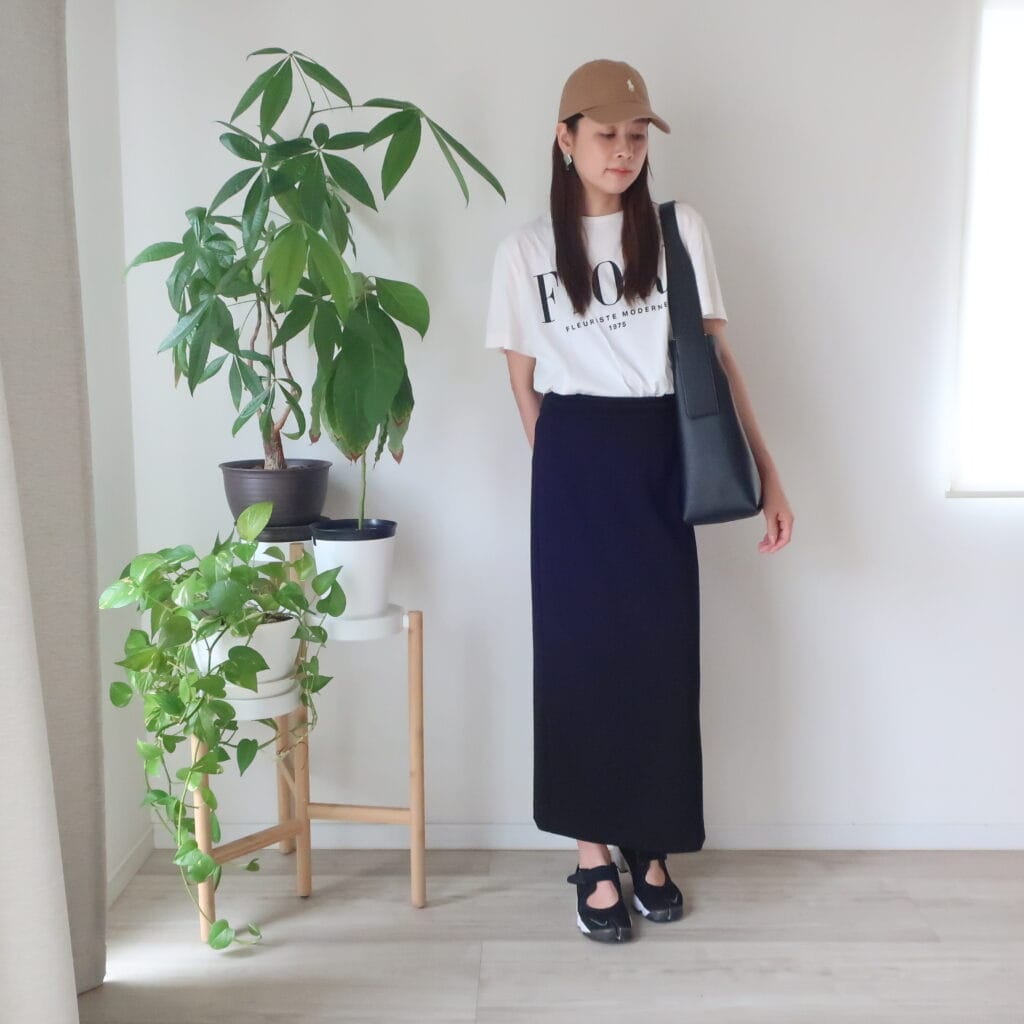 黒を利かせたカジュアルコーデに、キャメルカラーのキャップがポイントになります。