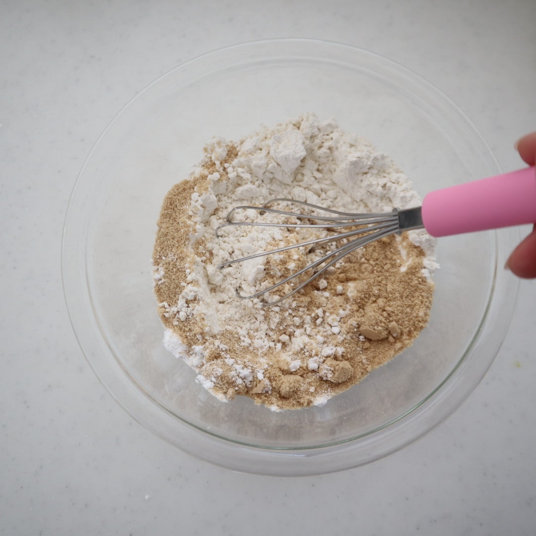 薄力粉・バーキングパウダーなど泡立て器で混ぜて…。(振るわなくていいのが嬉しい!)