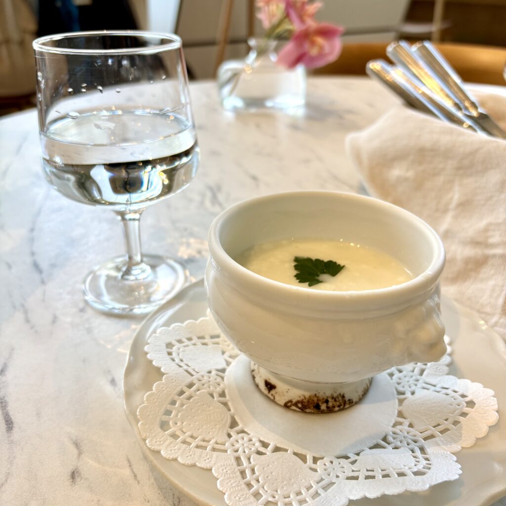 セットではメインに加え、前菜、スープと飲み物が付いてきます。メインはいくつか種類がありましたが、私はブリオッシュフレンチトーストのセットにしました。