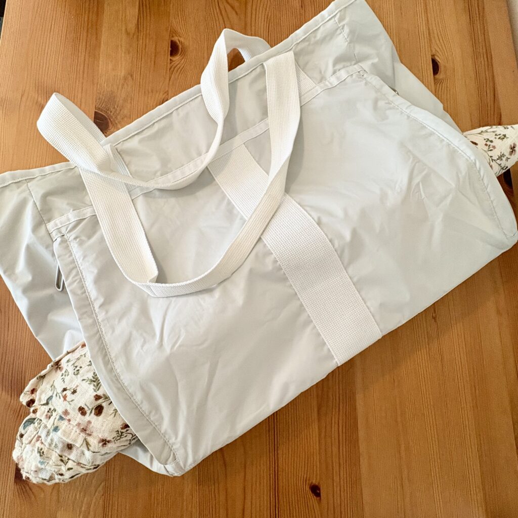 名前の通りジム通い用や通勤用などいろいろな場面で活躍しそうですが、私は現在0歳の娘の子育て中(育休中)なので、マザーズバッグとして使ってみました。
