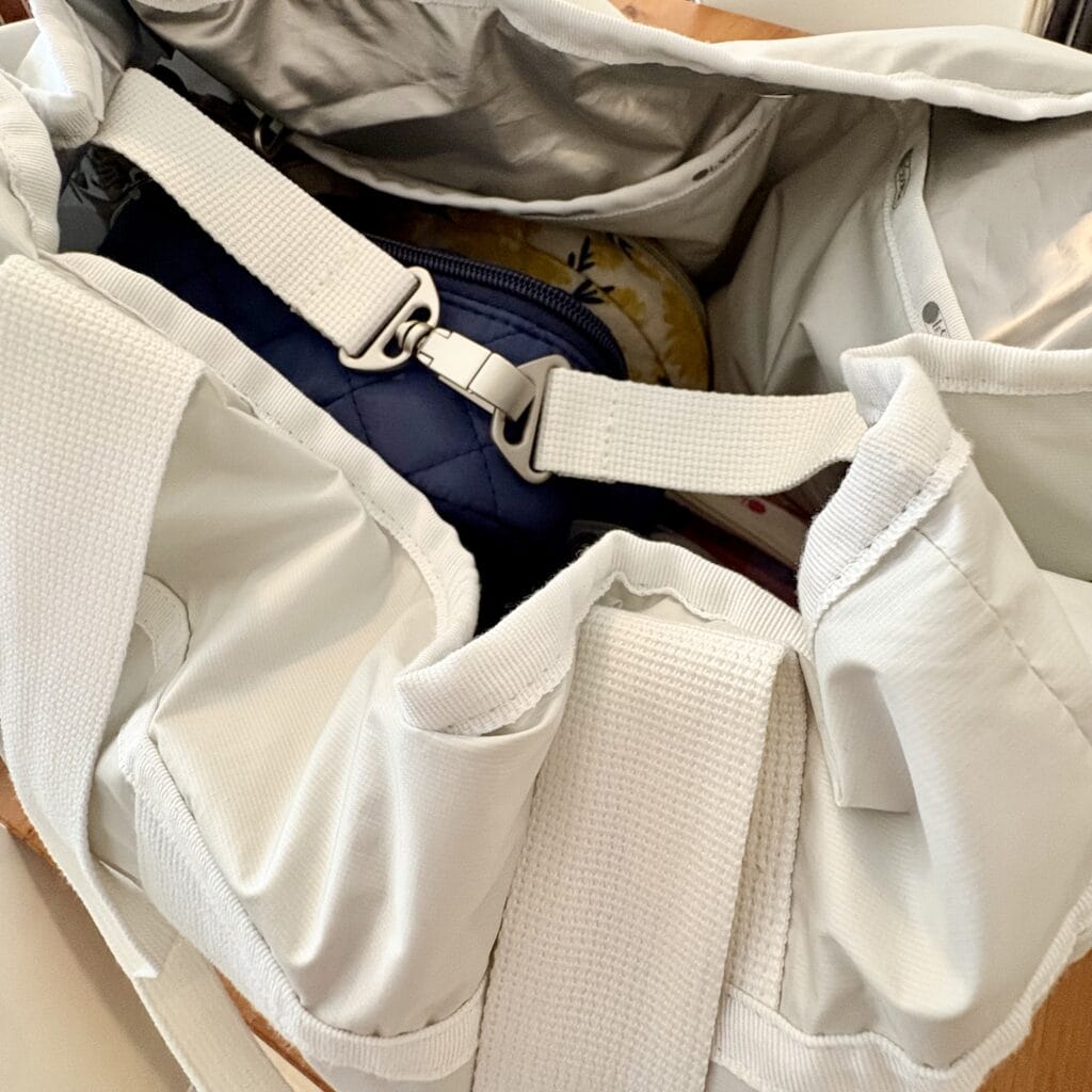 バッグの内側には取り外し可能なポーチも付いているので、貴重品などをしまっておいて、ベビーカーの下にバッグを収納する時にポーチだけさっと取り外したりしても良さそう。