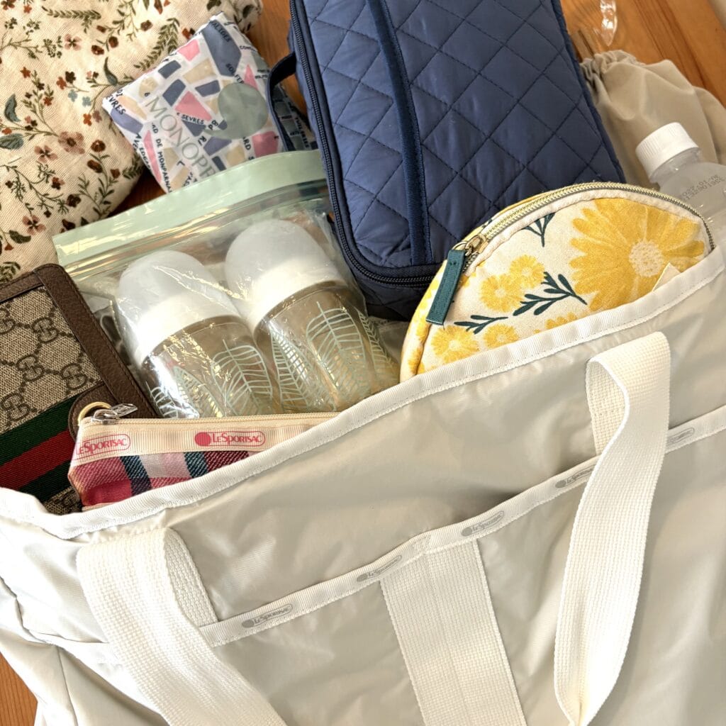 先日夫の実家のある福岡に飛行機移動した時には、ミルクやおむつをたくさん入れた機内バッグとしても活躍しました。