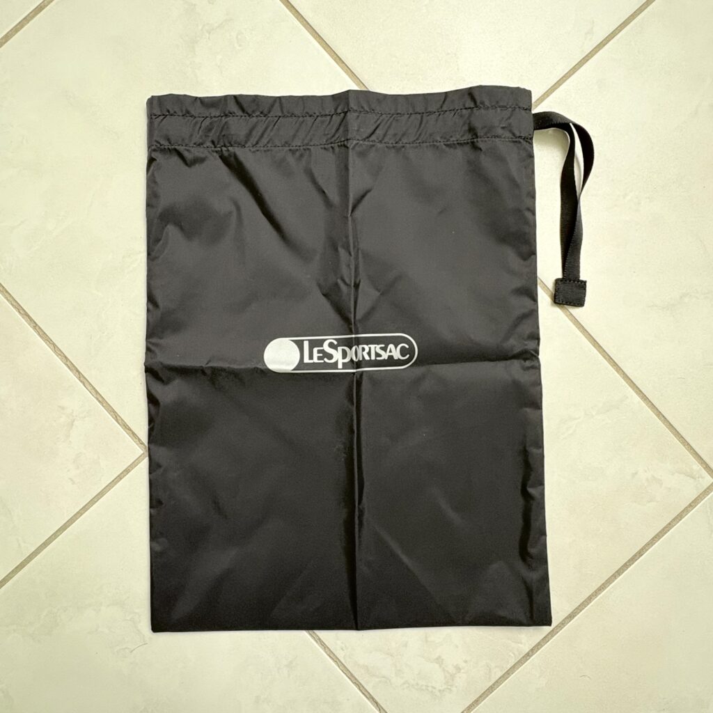 そしてこのバッグ、シューズケースにもぴったりな黒い巾着が付いています。
