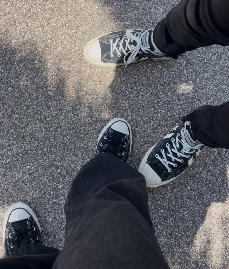 足元は夫婦ともにコンバース。伸びるゴム紐に変えてから幅も痛くなくて1番歩きやすいスニーカーになってます。