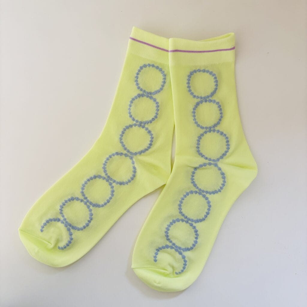 ミナのタンバリン柄のソックスはいくつか持っているのですが、ミモザっぽくて可愛いイエローに惹かれて。