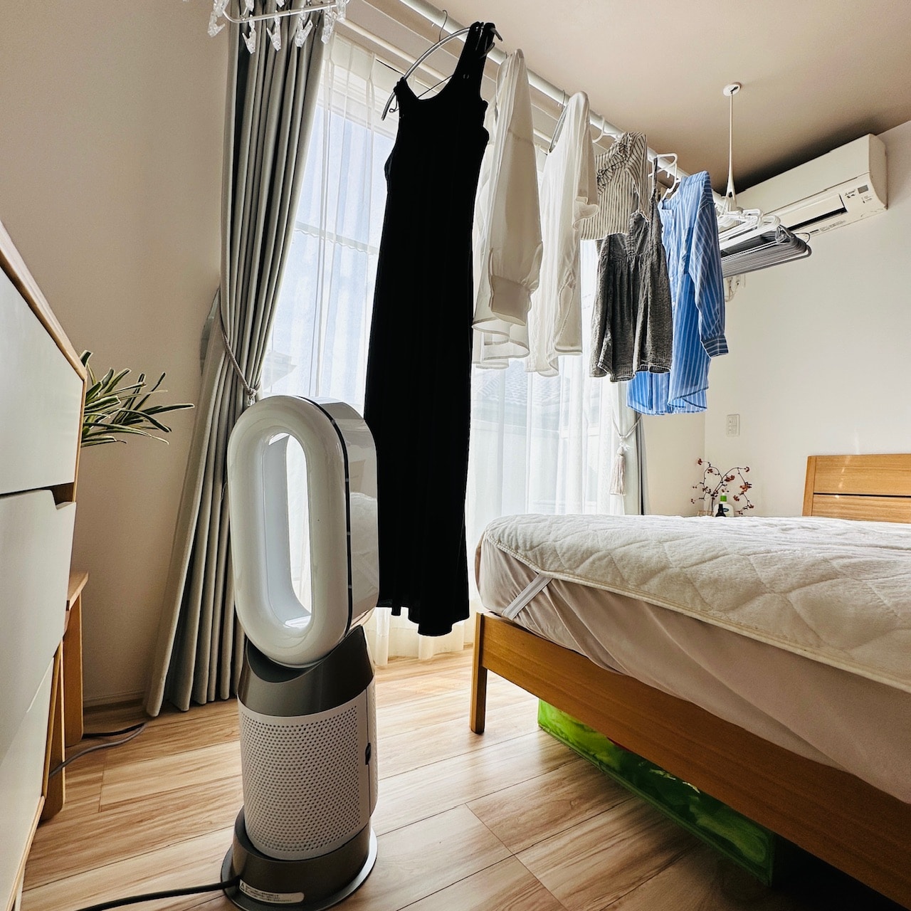 メーカーの方から温風+エアコンの除湿機能の併用をオススメ頂きました。そうすることで部屋の湿度も上がることなく快適に部屋干しできます!