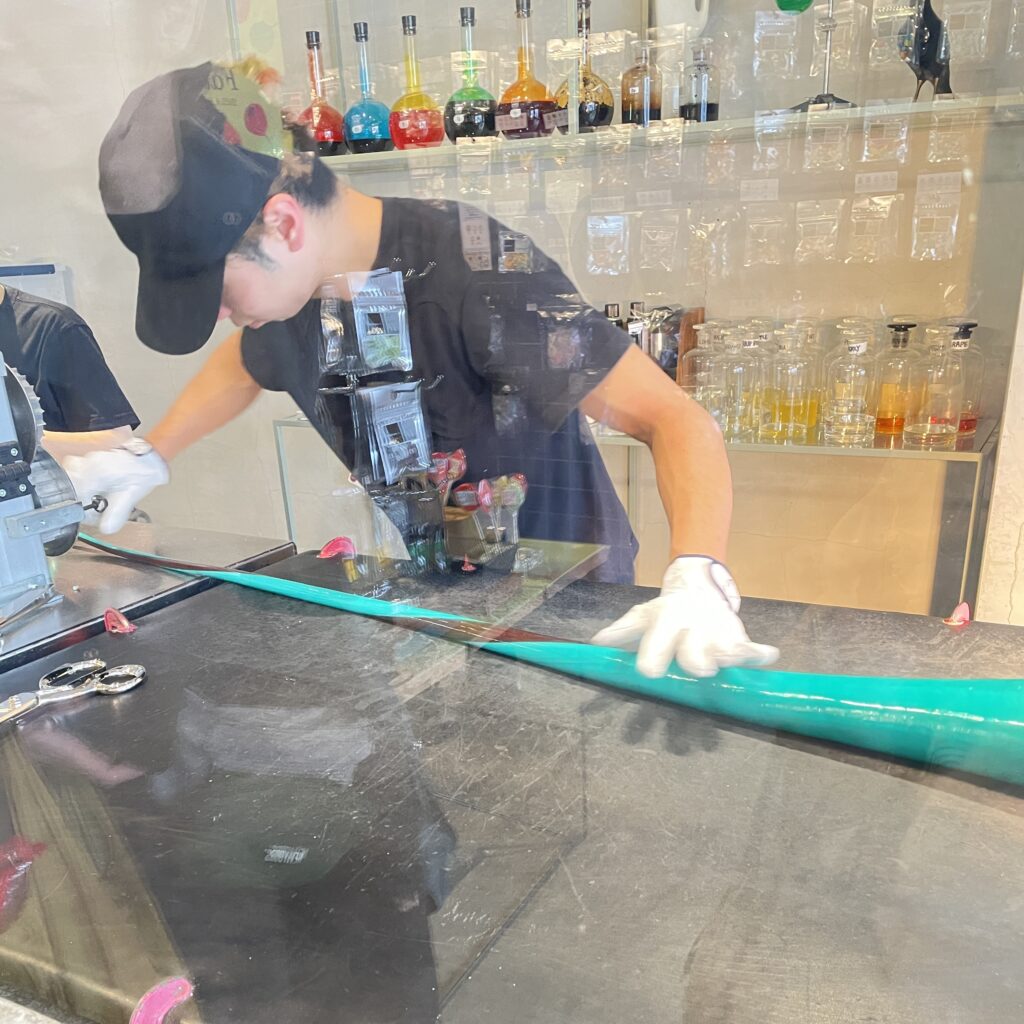 細くなった飴をものすごい早業で切っていく様子も見られてラッキーでした。