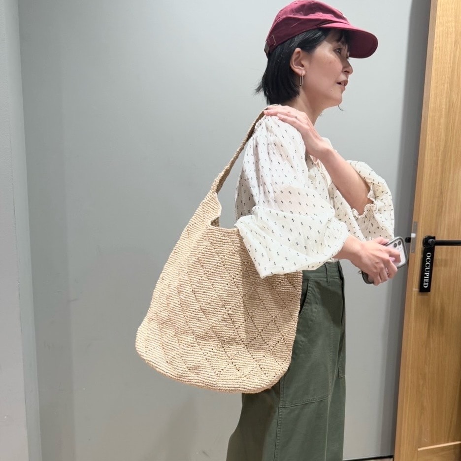 肩にかけられるような、ラフに持てる夏のバッグです。柔らかくて、シンプルなので、どんな服装にも相性ばっちり。