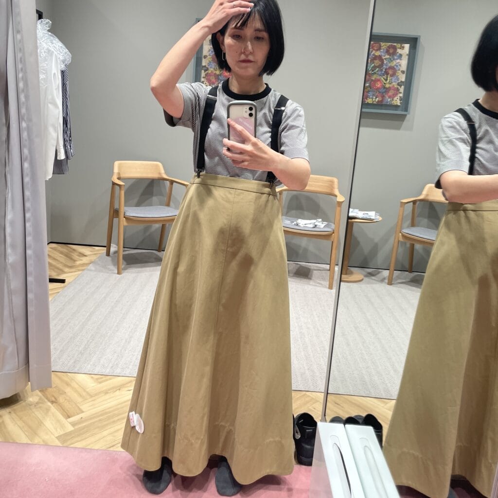 まず、本誌で気になっていた「12closet【石上美津江さんコラボ】【洗える】サスペンダー付きスカート」を試着。