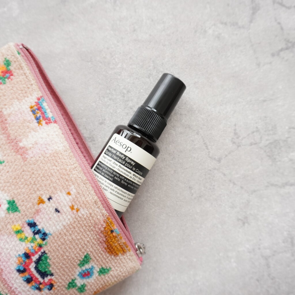イソップの商品はどれも良い香りで大好き。こちらのボディスプレーは消臭効果があり、気になる箇所に使うことができます。両脇に使うといいですよ〜とスタッフの方が教えてくださいました♩