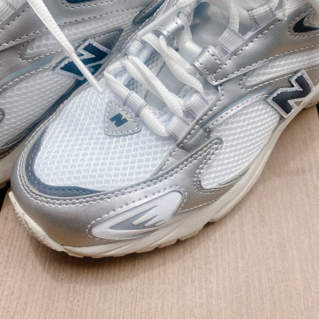 お店に入ってすぐ「あ!かわいい!」と目に入った、New balanceのシルバー×ホワイトのスニーカー。