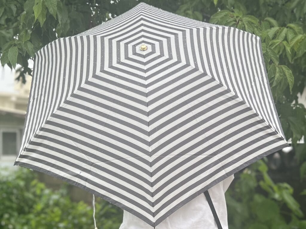 シンプルなデザインのモノトーンのボーダー柄に惹かれたこちらの傘。お得なアウトレット商品で、価格は40%OFFの¥6,600(税込)でした。