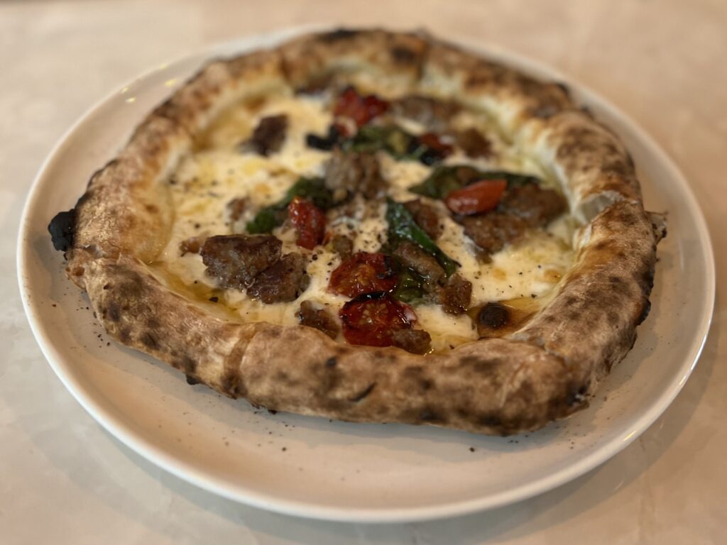 一緒に行った友人とシェアして、ピザは自家製サルシッチャやきのこが入った「フンギ」をいただきました。