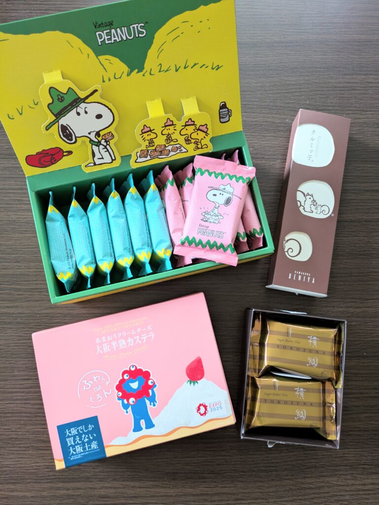 他にはシュガーバターの木✕ピーナッツのコラボ、駅の売店でミャクミャクがかわいい大阪半熟カステラを購入