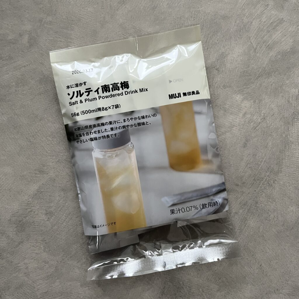 最近のお気に入りは、同じく無印良品の水に溶かすソルティ南高梅。