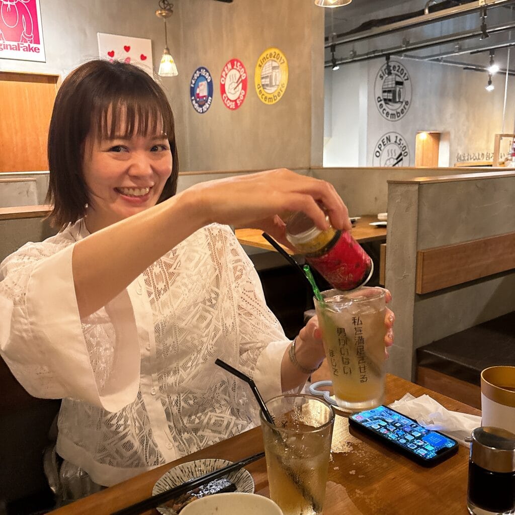 乾杯前にマスクをスッと下したきなちゃん。