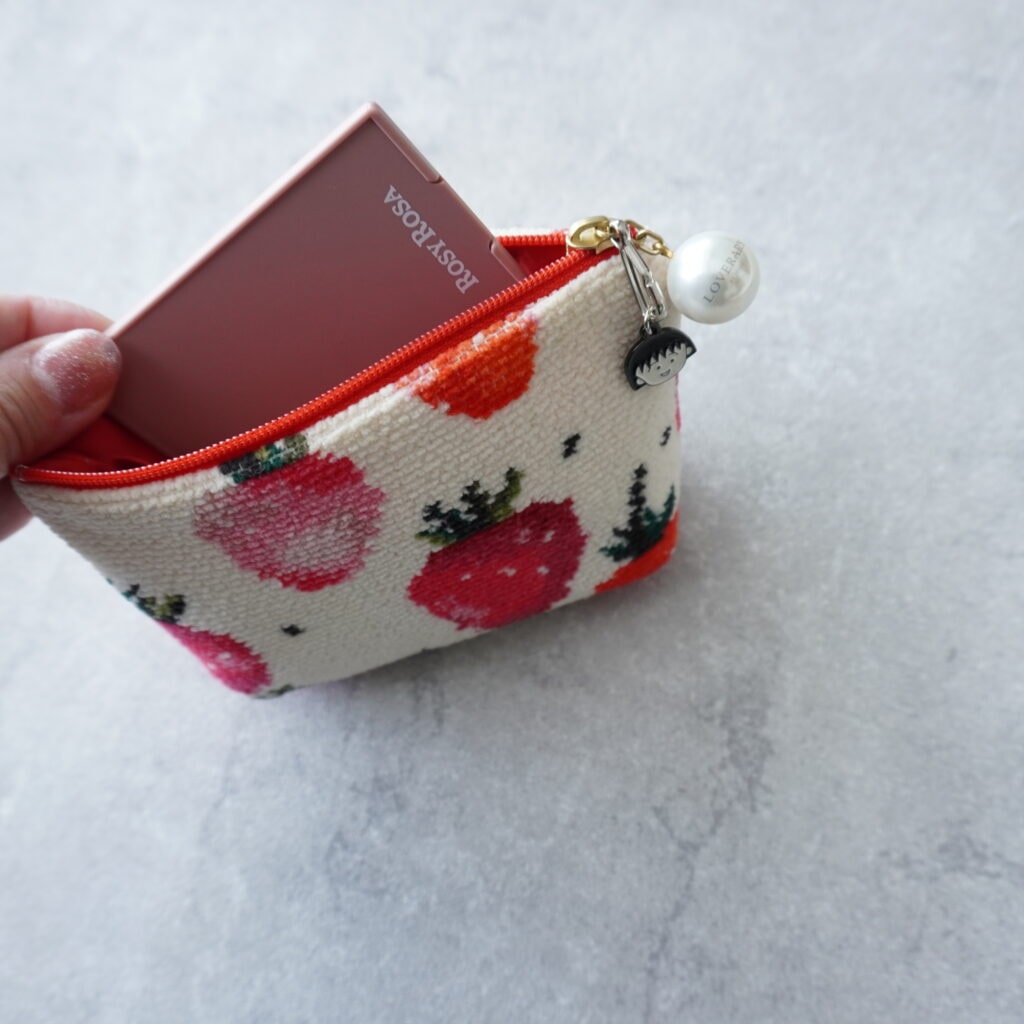 ミニサイズは、普段持ち歩くポーチに入れて使っています。愛用するポーチはラブラリーバイフェイラーのいちご柄ポーチ♩まるちゃんのチャームは099aimiとお揃いさ♡