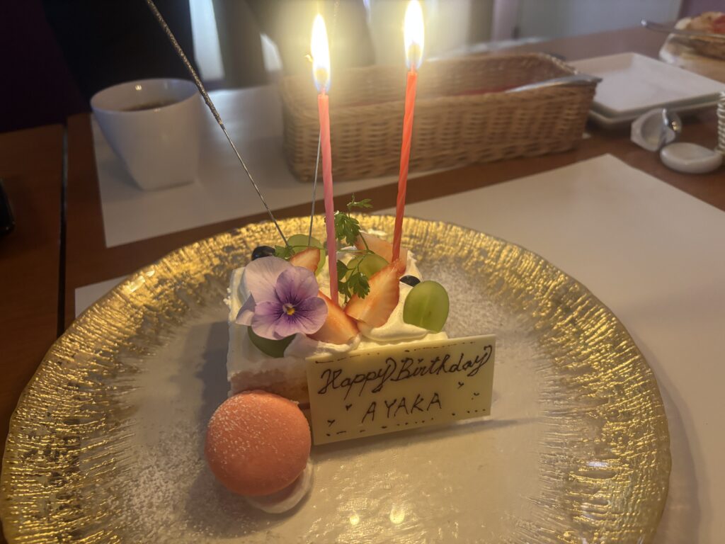 フルコース食べつつカラオケを歌い、最後はケーキでお祝いしていただきました。