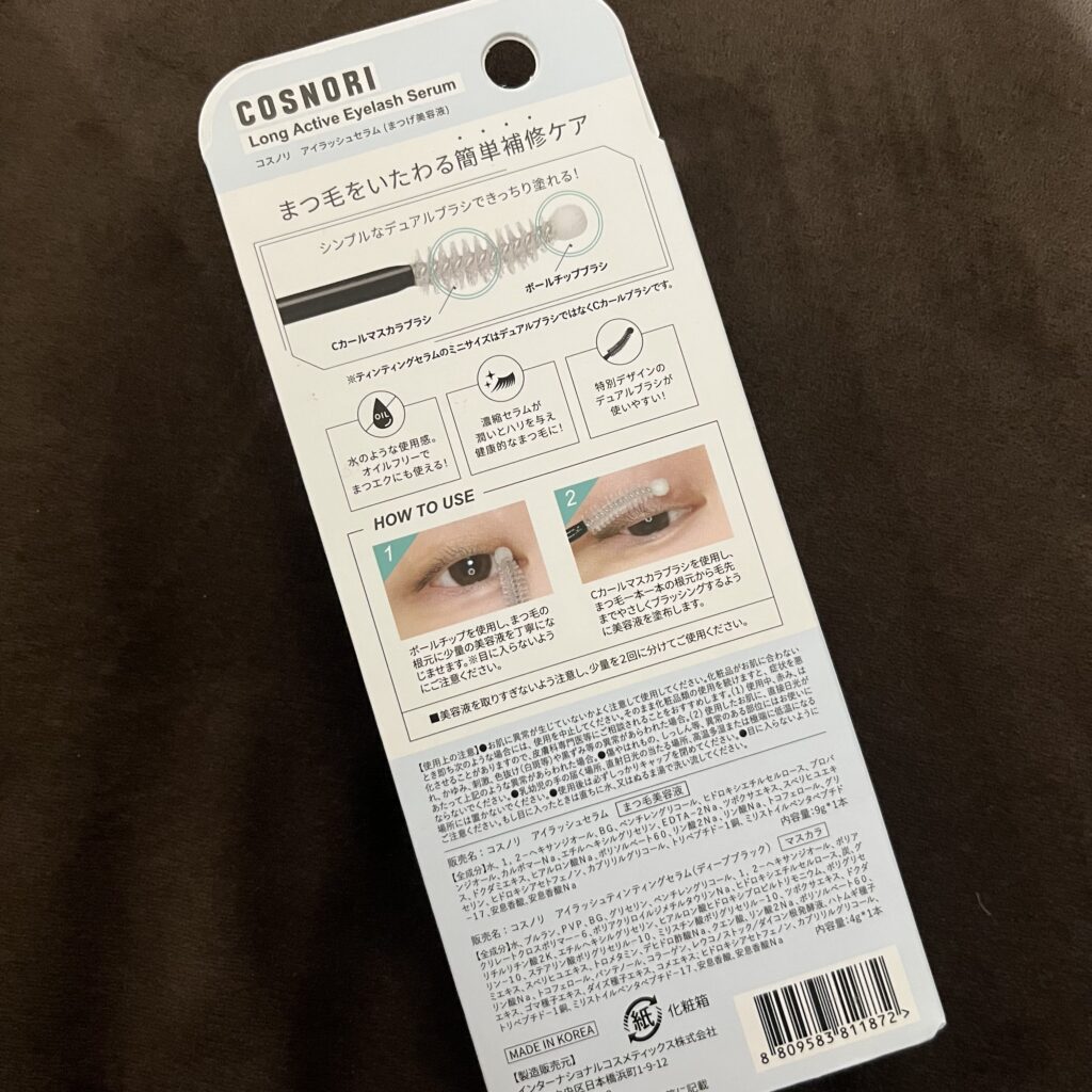 「コスノリ アイラッシュティンティングセラム」というマスカラ下地&ナチュラルメイク&まつげ美容液のお得感あるマスカラです。