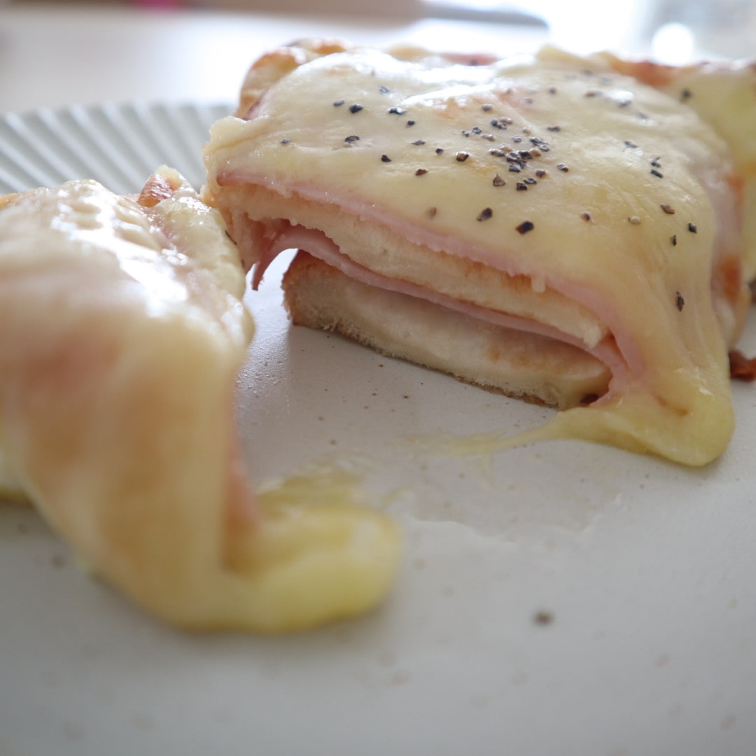 クロックムッシュは、ハムとチーズを挟んだパンをフライパンで焼いたもの。ベシャメルソースなどのホワイトソースをかけて、軽食として食べられるそうです!