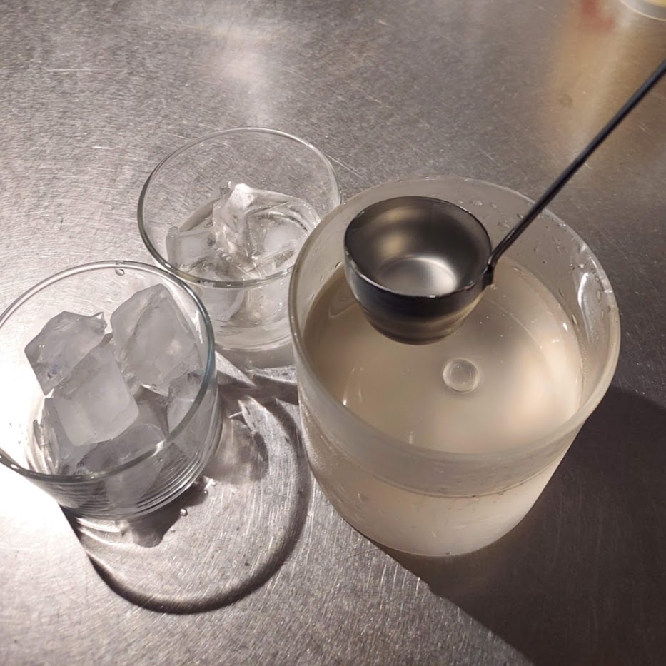 レードルはこんな風に、出来上がった【梅シロップ】をグラスへ移すときに便利です♡