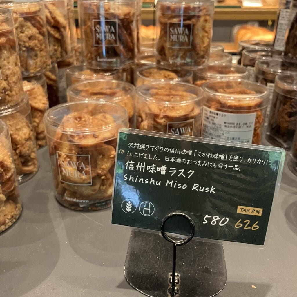 店内はパンはほとんどなく(14時前なので…当然よね…)せっかくなので、長野らしいものを、と思い、長野のブルーベリージャムと信州味噌サブレを購入。