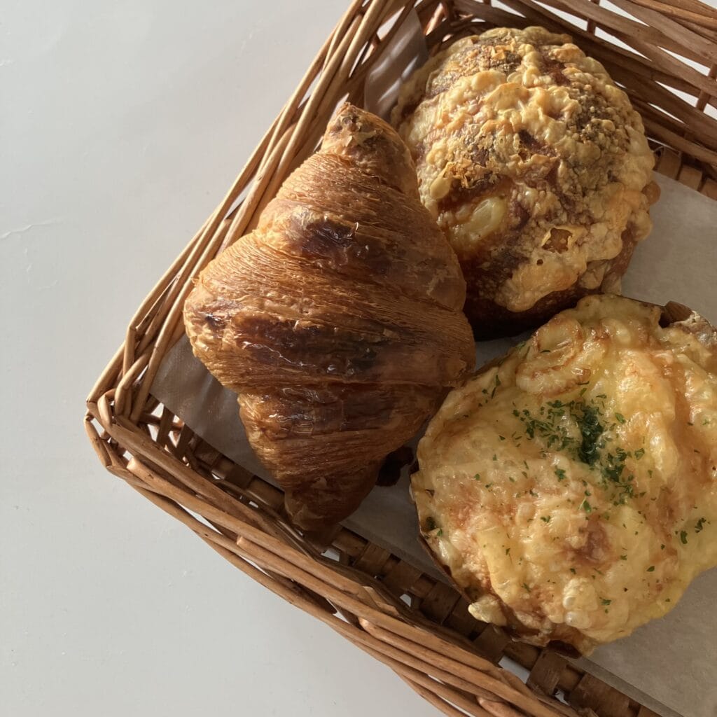 クロワッサン(無難に)、野沢菜のチーズブレッド、チーズブレッドを。